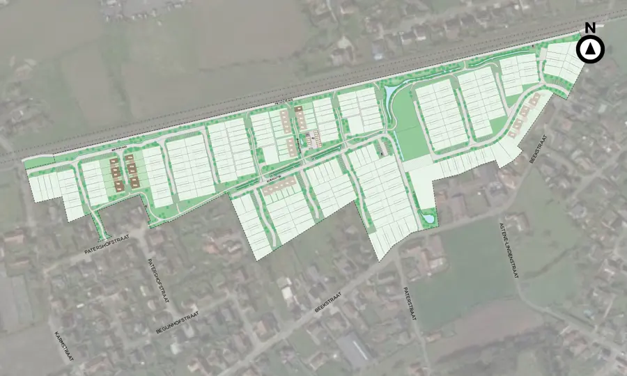 The neighbourhood “Beekstraat” is located in Astene, close to Deinze. Astene is embedded in greenery and its residents benefit from a rural setting and clean air. From Beekstraat, a 5-minute bike is all that separates you from all your everyday amenities: a supermarket, a pharmacy, an organic farm shop, a medical centre, several eateries, a garden centre, ...