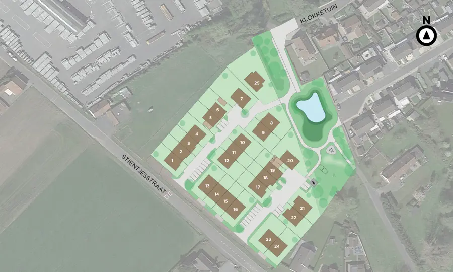 Matexi is building nearly zero-energy homes (BEN-homes) here, with an E-level of 30 and fitted with solar panels. You’ll enjoy high-quality interior finishes, including underfloor heating on the ground floor and in the bathroom. The homes offer 1 or 2 bathrooms and a spacious attic, accessible via a fixed staircase or attic hatch. Lots 5, 6, and 20 come with a carport; the other lots feature an integrated garage.