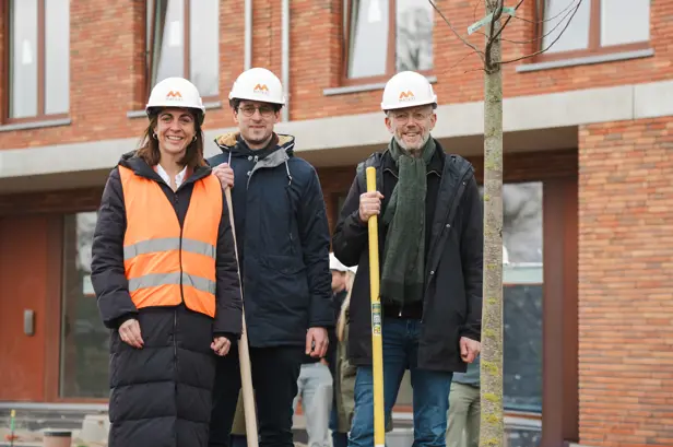Schepen Watteeuw plant eerste boom van nieuw buurtpark in Matexi-woonbuurt Meergaard